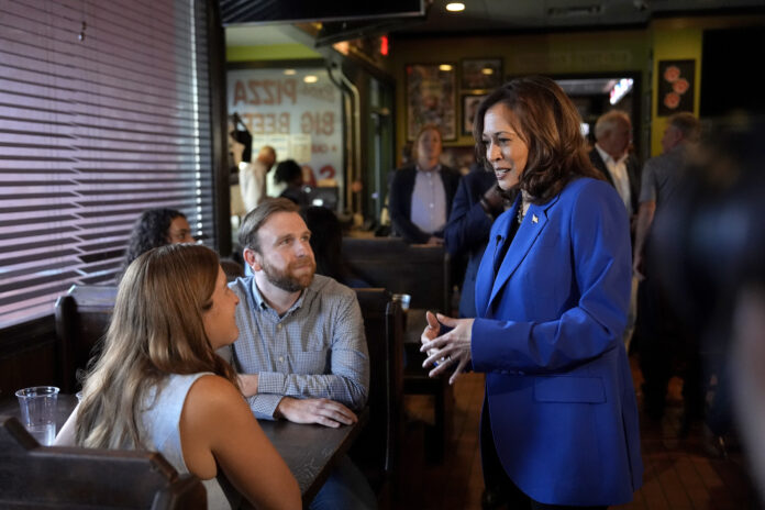 At a stop in the township of Moon, Harris popped into a Sheetz convenience store to seek out Doritos, her go-to snack. She later stopped at a Primanti Bros. restaurant, a famed chain known for sandwiches layered with coleslaw and fries, where she met diners and posed for a few pictures. Both franchises were launched in western Pennsylvania.