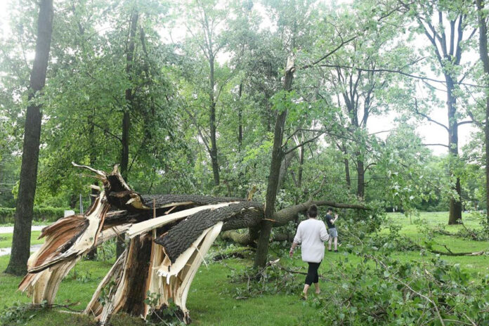 The storm uprooted a massive tree that fell on one family’s house and came through the roof, landing on a bed where a woman and her 2-year-old were sleeping, officials said in a post on the city’s website. Crews worked for nearly an hour to remove the roof and parts of the tree and then lift the tree to get the victims out.