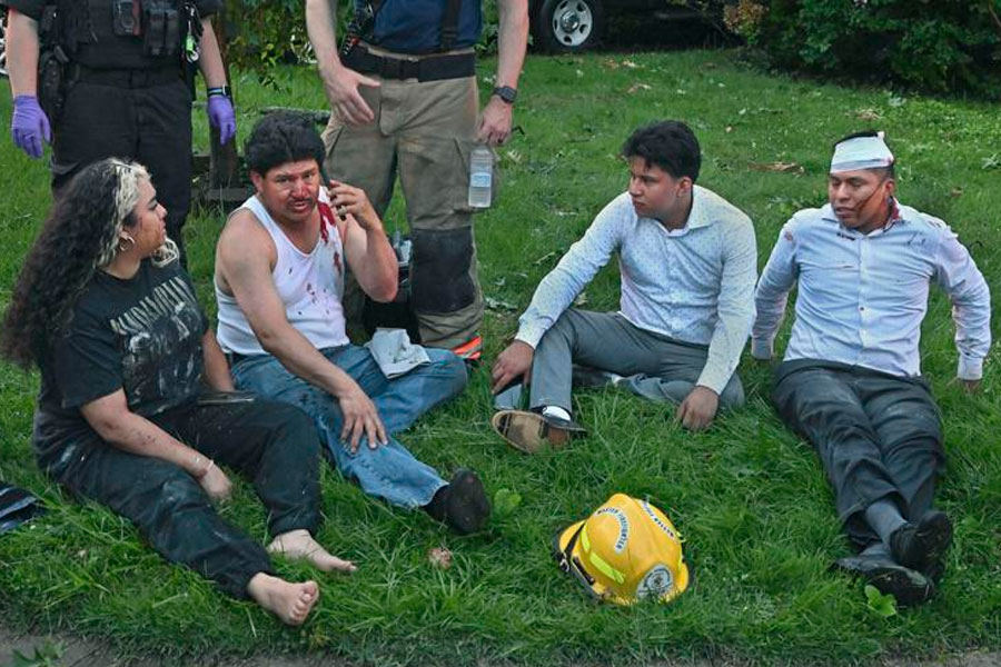 In Maryland, emergency workers responded to reports that people were trapped inside structures that collapsed after a tornado hit Wednesday night. In Gaithersburg, there were reports of three collapsed structures with people trapped inside, Montgomery County Fire and Rescue Service spokesperson Pete Piringer said. The most significant damage occurred when a large tree fell on a house, injuring five people who were taken to hospitals, including one with traumatic injuries, he said. No serious injuries were reported at the other structures.
