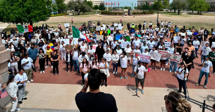 Sam Wargin Grimaldo, de 36 años, abogado del sur de Oklahoma City cuya madre emigró de México en 1979, pidió a los manifestantes que se empadronen para votar y se involucren más en la política.