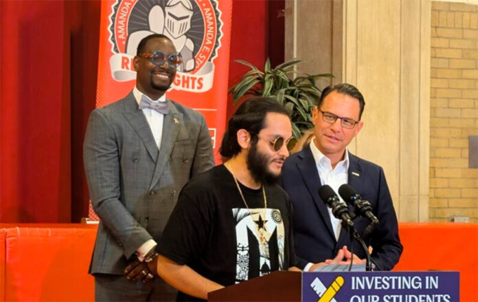 El gobernador de Pensilvania, Josh Shapiro, visitó la escuela primaria Amanda Stout para celebrar los 41 millones de dólares en fondos que recibirá el distrito escolar de Reading del presupuesto de este año.