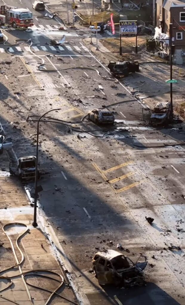 “El Departamento de Bomberos de Filadelfia ha estado trabajando diligente y cuidadosamente en el lugar de esta tragedia desde poco después de las 6 p. m. de ayer por la noche”, dijo el comisionado de bomberos Jeffery Thompson. “Nuestros miembros extinguieron múltiples incendios en múltiples lugares, inmediatamente comenzaron a evaluar y tratar a las víctimas y evaluaron el área en busca de otros peligros. Seguimos trabajando en estrecha colaboración con las numerosas agencias locales, estatales y federales que respondieron para garantizar una investigación y recuperación exhaustivas. Estamos agradecidos con las organizaciones que brindan apoyo, respiro y sustento a todos en el lugar. Por favor, sigan teniendo en sus pensamientos y oraciones a todos los afectados”.