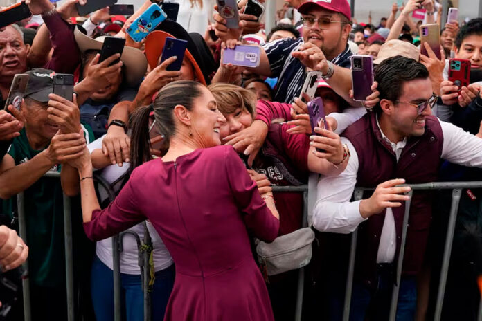 Un grupo de personas con el rostro cubierto marcó un alto a la caravana en la que viajaba la candidata presidencial por el partido oficialista, Claudia Sheinbaum, mientras hacía campaña en el estado de Chiapas, en el sur de México, para exigirle que ponga fin a la violencia en la región en donde se libra una disputa territorial entre dos cárteles del narcotráfico.