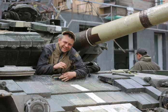 Un miembro de la milicia de la República Popular de Donetsk sale de su tanque en Mariúpol, en un territorio controlado por el gobierno de la República Popular de Donetsk, en el este de Ucrania, el 4 de mayo de 2022. (Foto: AP/Alexei Alexandrov)