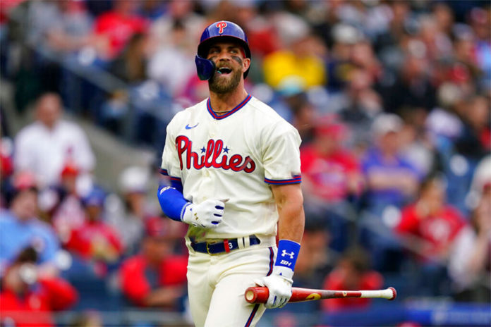 Harper doubled and scored on Nick Castellanos’ double in the first. Jean Segura had an RBI single and Castellanos added a sacrifice fly in the third to make it 3-0.