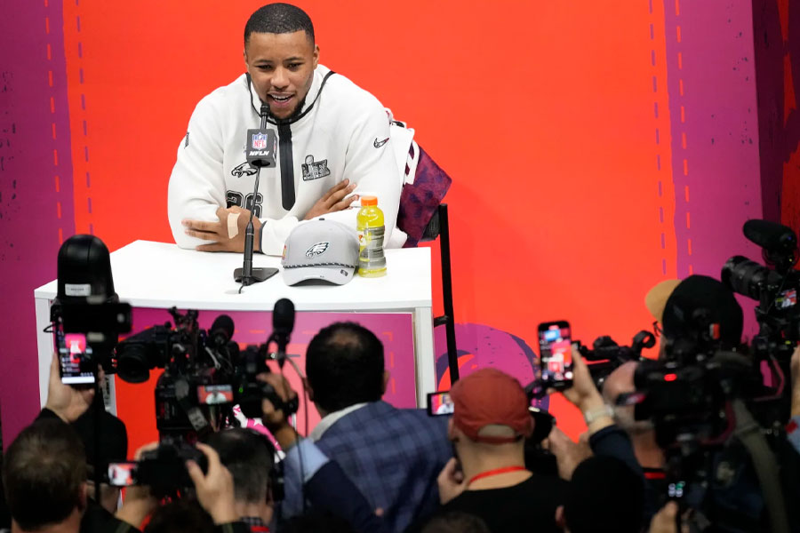 Before Mahomes, Kelce and the Chiefs take on Hurts, Barkley and the Eagles in the Super Bowl on Sunday, they had to tackle the media in waves.
