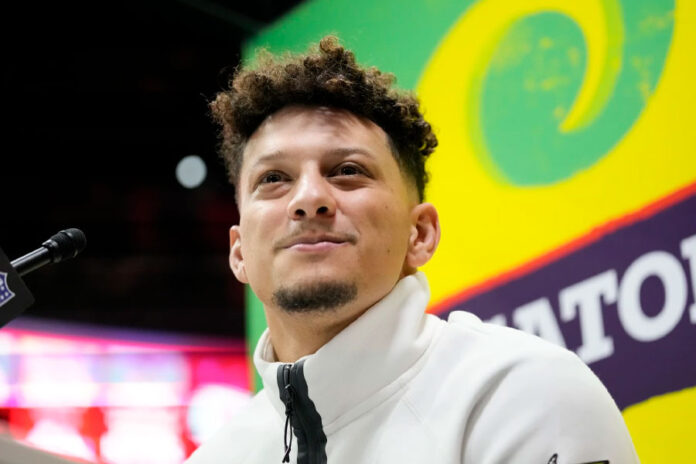 Patrick Mahomes treated Super Bowl opening night like a two-minute drill, providing rapid-fire answers to one question after another. Travis Kelce passed on an inquiry about popping the question to Taylor Swift.