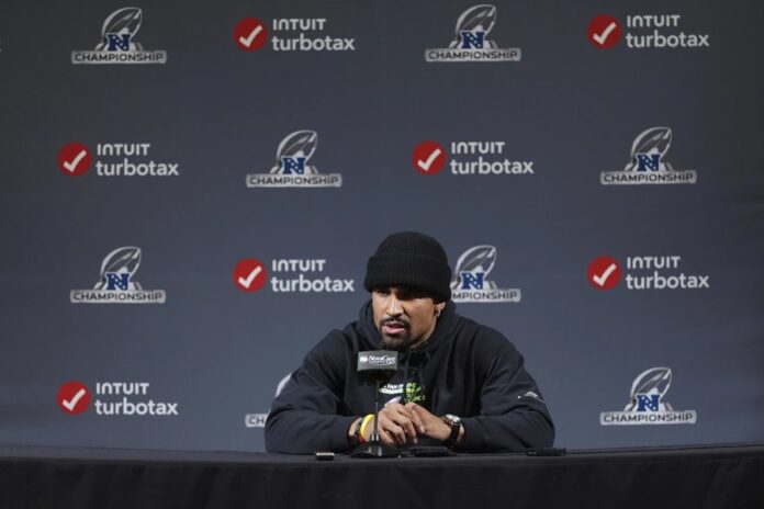 With the Eagles riding Barkley and his 2,005 yards rushing this season, Hurts’ passing numbers dipped He threw for 2,903 yards after topping 3,000 in each of the previous three seasons. Hurts has thrown for only a combined 259 yards and two touchdowns with no interceptions in playoff wins against Green Bay and Los Angeles.