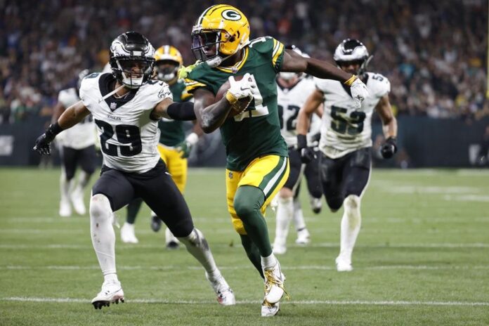 Watson cazaría un pase de Jordan Love para dar esperanzas a los Packers. Pero volvió a aparecer Barkley, indescifrable esta noche.