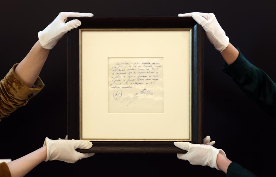 La servilleta, que data de diciembre del 2000, cuando Messi tenía apenas trece años, supone el compromiso de un contrato con el Barcelona y estaba firmada en bolígrafo azul por Carles Rexach, por entonces director deportivo de los ‘Blaugrana’.