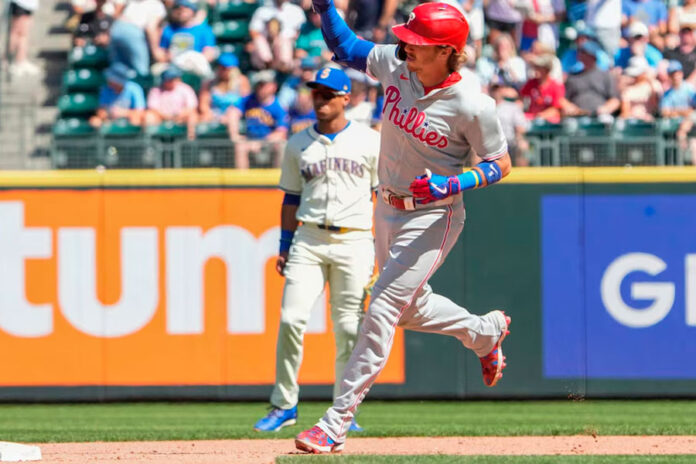Philadelphia held a tight 1-0 lead going into the eighth inning before breaking things open with a homer barrage. Stott led off the inning with his eighth homer against Mariners reliever Yimi García. With two outs, García walked Trea Turner and Seattle turned to left-hander Tayler Saucedo, who promptly gave up a two-run bomb to Harper and Bohm made it back-to-back home runs. Bohm’s 12th homer extended his on-base streak to 22 games, the longest active streak in the majors.