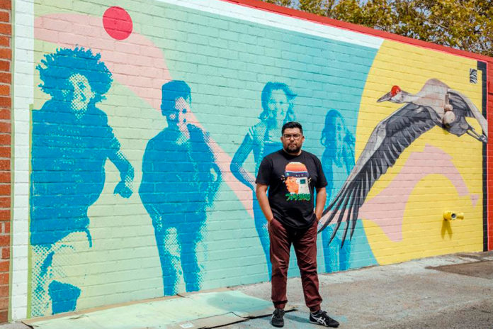 Uno de esos artistas es Steve Martínez, muralista angelino de origen guatemalteco que para este proyecto se inspiró en niños locales con los que habló personalmente y le explicaron que uno de los aspectos negativos de la pandemia es que están «aburridos de estar atrapados en la casa» y quieren salir a la calle a jugar.