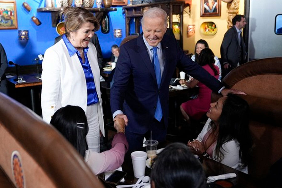 Biden llegó al aeropuerto de Las Vegas en su limusina presidencial negra, conocida popularmente como «The Beast» (La Bestia). Al salir del vehículo, levantó el pulgar de una de sus manos en señal de aprobación, mirando a los periodistas que le esperaban.
