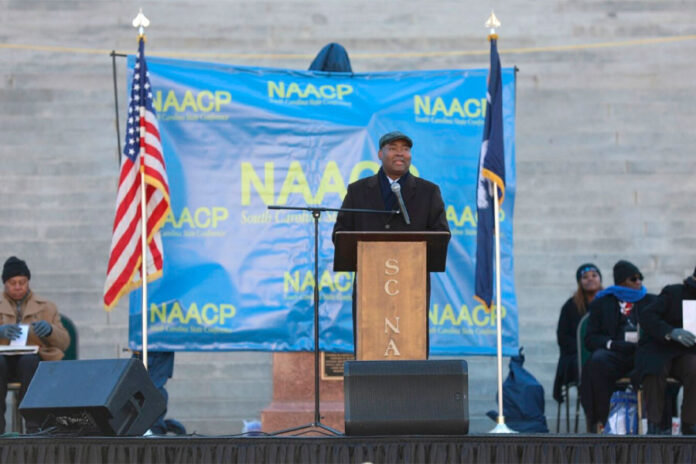 En la frígida Columbia, Carolina del Sur, un mitin del Día de MLK en el Capitolio estatal entró en su 25º año con una multitud más pequeña, con cierta trepidación debido al cambio de poder que ocurría en Washington. El evento de Carolina del Sur comenzó en 2000 cuando decenas de miles de personas se reunieron para exigir que la bandera confederada fuera retirada de la cúpula del Capitolio.