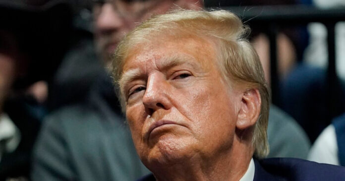 El expresidente Donald J. Trump observa los campeonatos colegiales de lucha, el sábado 18 de marzo de 2023, en Tulsa, Oklahoma. (Foto: AP/Sue Ogrocki)