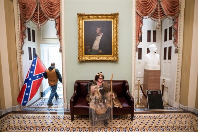 El hombre fue fotografiado dentro del Capitolio durante el asalto del pasado miércoles, vistiendo pieles, un chaleco antibalas de la Policía y portando un escudo de los antidisturbios y sus imágenes fueron algunas de las más publicadas por los medios durante el episodio.