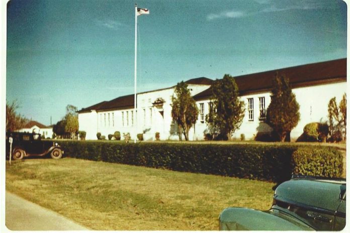 Fotografía de 1954 divulgada por la Comisión Histórica del Condado de Wharton donde se aprecia la escuela Stephen F. Austin que está nominada para la lista de 2022 del Fideicomiso Nacional para la Preservación Histórica como uno de los 11 lugares históricos más amenazados de Estados Unidos. (Foto: EFE/Wharton County Historical Commission)