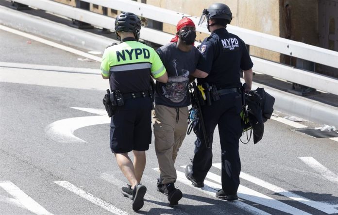 Cientos de participantes de la «Marcha de Liberación Negra» partieron del estadio Barclays Center, punto de reunión de BLM, y atravesaron el icónico puente de Brooklyn hasta llegar a la Alcaldía, en el sur de Manhattan, donde había se desplegado un gran número de agentes de la Policía local (NYPD, en inglés) y se produjeron enfrentamientos.