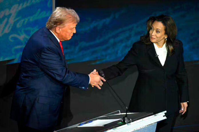 Cuando la vicepresidenta Kamala Harris cruzó el escenario del debate el martes 10 por la noche para darle la mano al expresidente Donald Trump, fue la primera vez que los dos se conocían en persona. Fue un breve y raro momento de cordialidad en un enfrentamiento marcado por declaraciones falsas y, a veces, bizarras del expresidente.