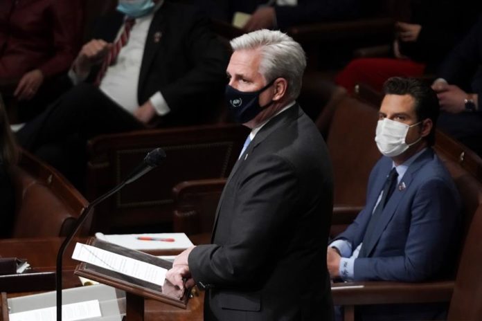 El encuentro, celebrado el jueves, se da apenas dos semanas después de que Kevin McCarthy señalara en calidad de culpable a Donald Trump por el ataque al Capitolio que acabó con cinco personas muertas.