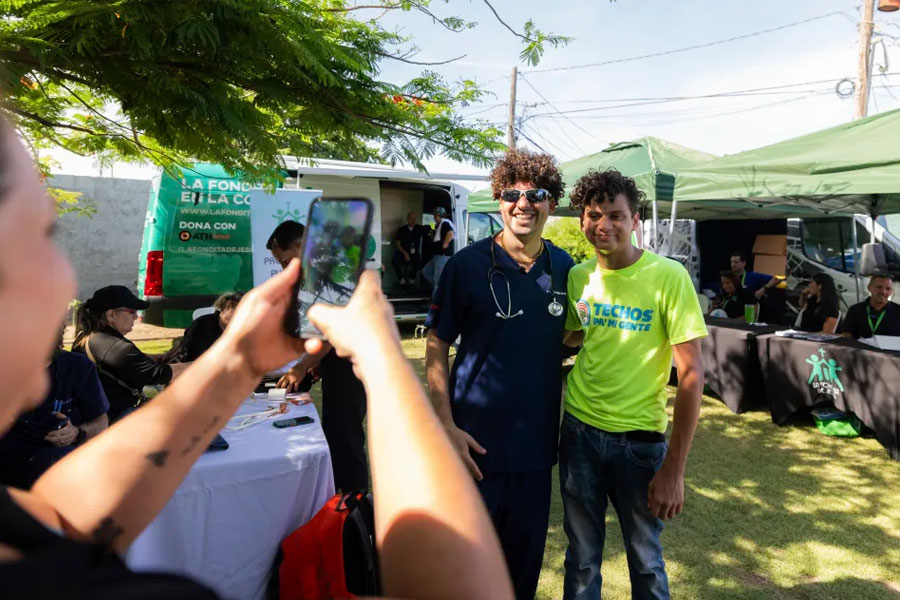 Cuando necesita un par de manos extra, pide voluntarios para ayudar con las clínicas móviles en Puerto Rico, y sus fans suelen acudir al llamado.