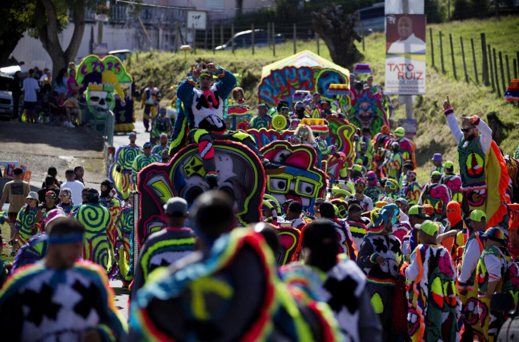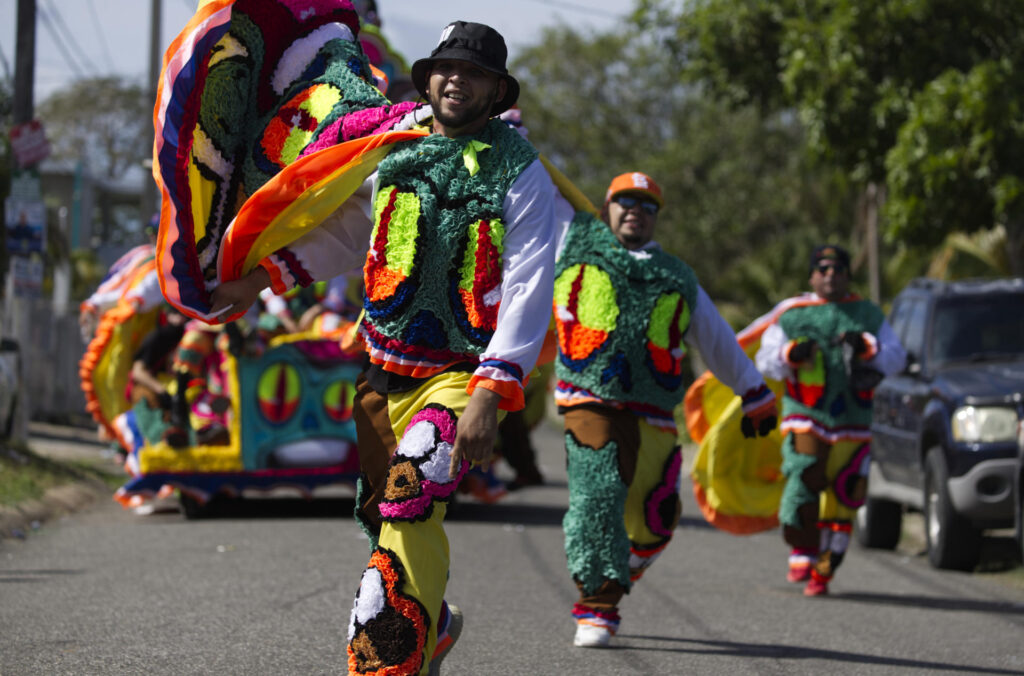 Con coloridos trajes y máscaras, los «corredores» marcharon por las calles del pueblo de Hatillo, atestadas de visitantes, en conmemoración del Día de los Inocentes.