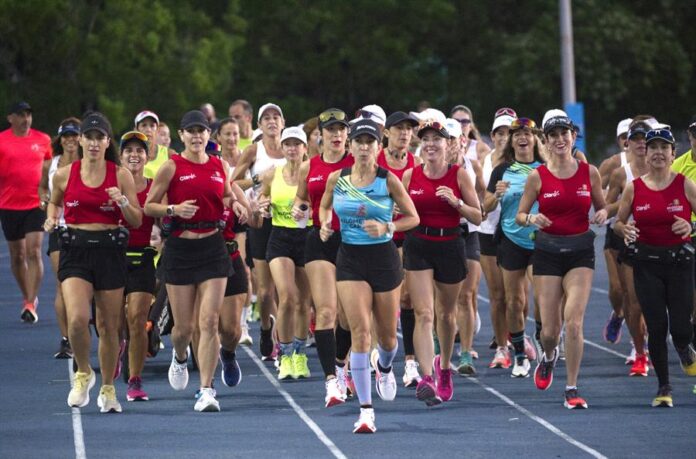 Con el lema ‘Cada Pisada Cuenta’, 27 «embajadoras» lideran grupos de un mínimo de 10 corredores que transitarán 13 millas (26 kilómetros) cada uno ininterrumpidamente hasta la noche del domingo para apoyar la Red de Albergues de Violencia de Género.