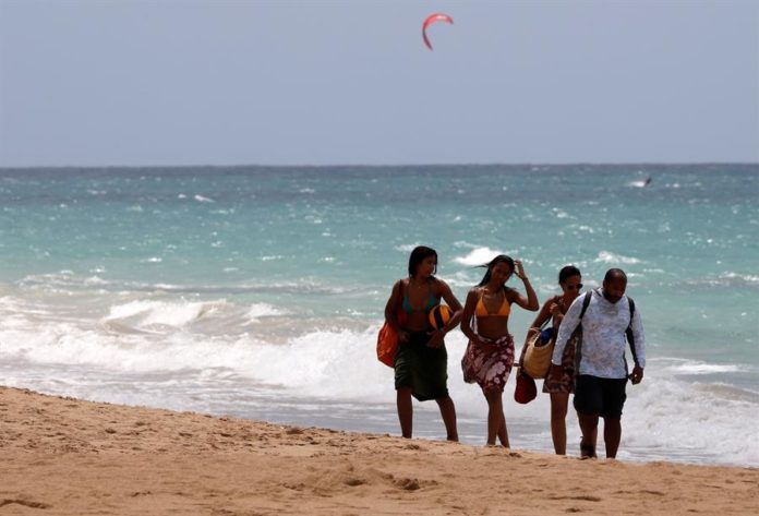Fotografías de archivo que muestra unas personas caminando en grupo en la playa de San Juan, Puerto Rico. (Foto: EFE/Thais Llorca)