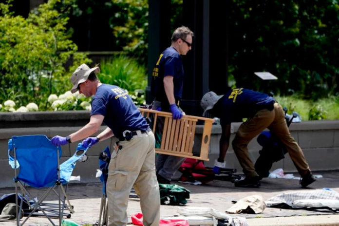 Más temprano ese día, los agentes del FBI miraron dentro de los contenedores de basura y debajo de las mantas de picnic mientras buscaban más pruebas en la escena. Inicialmente, los disparos se confundieron con fuegos artificiales antes de que cientos de personas huyeran aterrorizados.