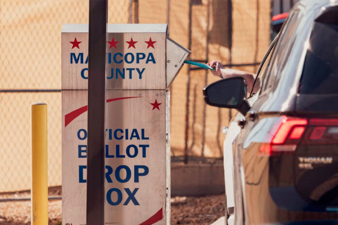 La ley de votación por correo de Arizona también prolonga el recuento. Permite a los votantes enviar las papeletas por correo antes del cierre de las urnas el día de las elecciones. En 2022, unos 293.000 votantes, alrededor de una quinta parte del voto total en Maricopa, entregaron sus papeletas por correo el día de las elecciones.