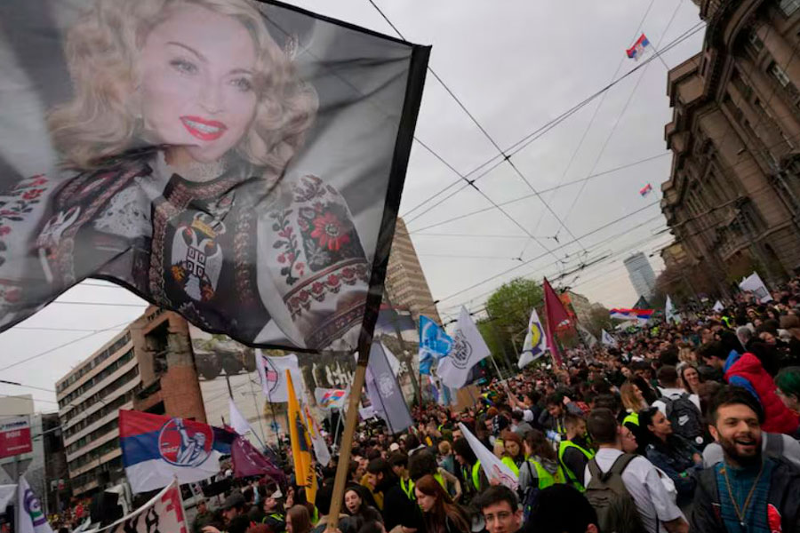 El 24 de marzo, en Belgrado, Serbia, decenas de personas participaron en una protesta contra un proyecto inmobiliario de la firma del yerno de Donald Trump, Jared Kushner, en el sitio donde se ubicaba la sede del ejército yugoslavo destruida en los bombardeos de la OTAN en 1999. (Foto: AP/Darko Vojinovic)