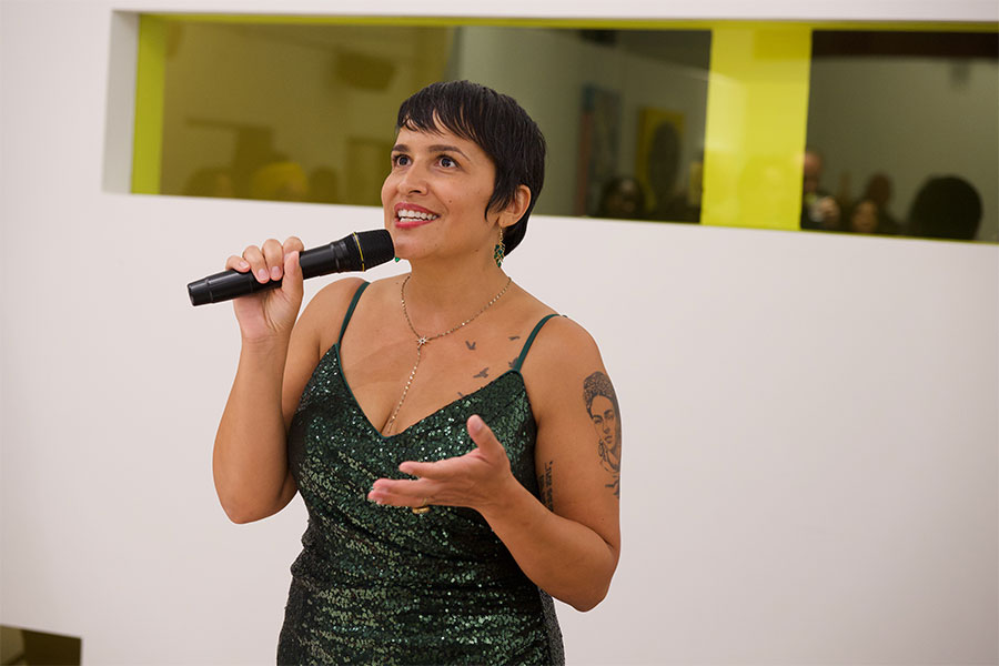 In addition to the art exhibit, the evening included captivating live performances. Lili Ruiz performed an emotional flamenco dance, while Emily Sierra delivered a lively Latin saxophone performance, adding vibrant cultural elements to the night and enhancing the overall experience for attendees.