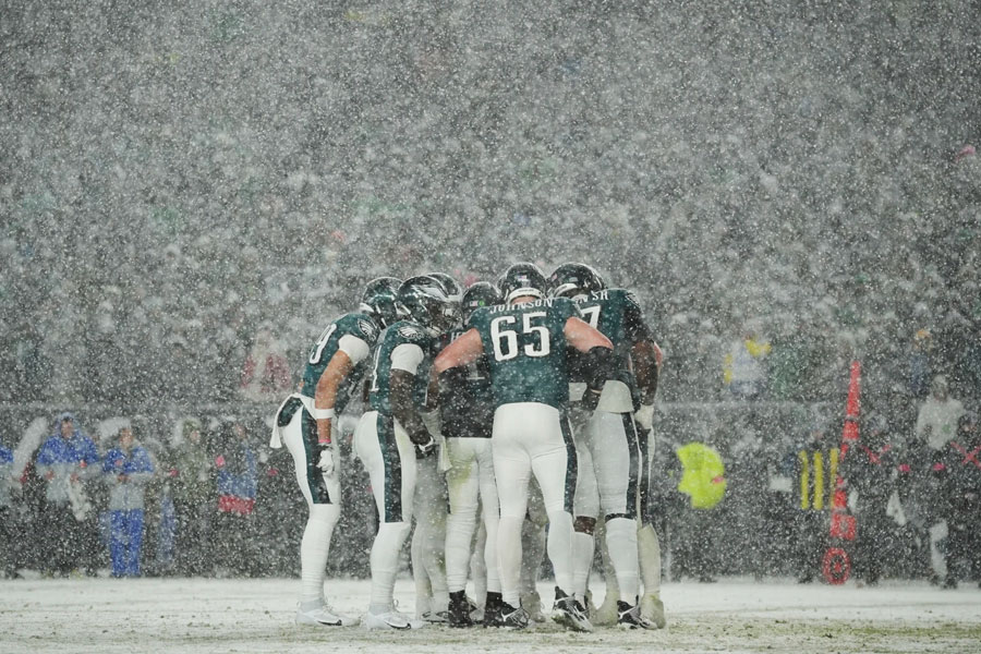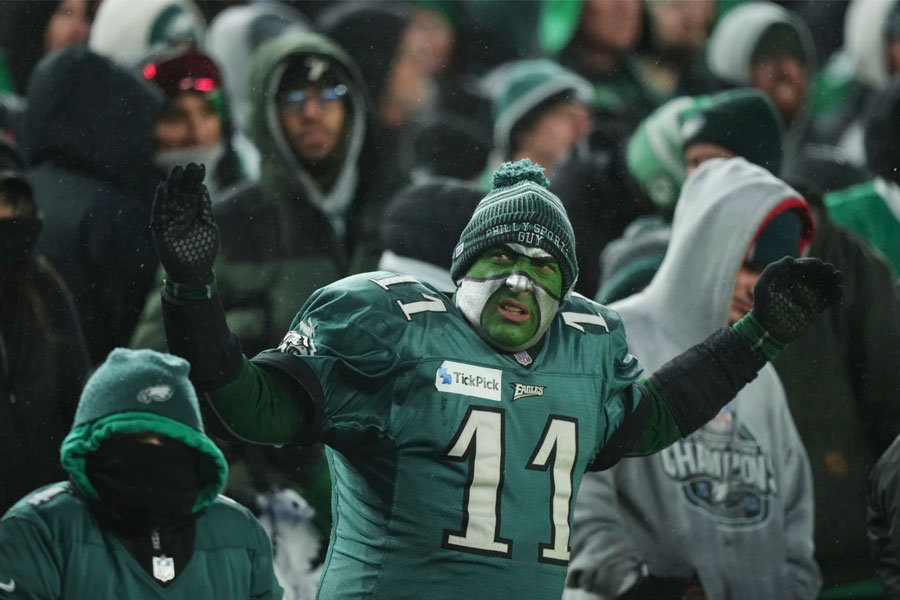 These Philly Snow Birds had cause for celebration — they will host the NFC championship game Sunday against Washington after the Commanders stunned No. 1 seed Detroit on Saturday.