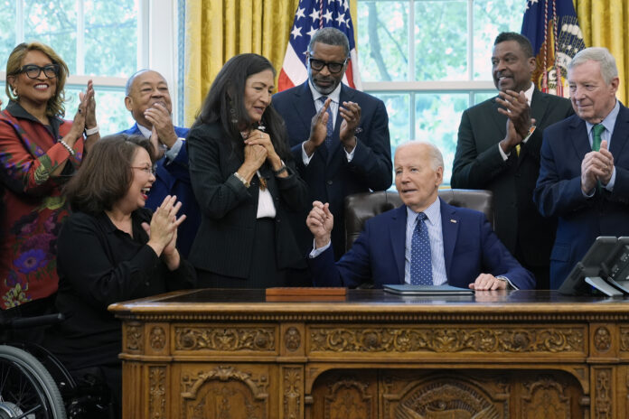 El esfuerzo del presente demócrata de establecer el monumento se produce al tiempo que busca pulir su legado en sus últimos meses en el cargo. Biden también busca ayudar a la vicepresidenta Kamala Harris a distinguirse del expresidente Donald Trump, que pretende reducir la ventaja histórica de los demócratas entre los votantes negros.