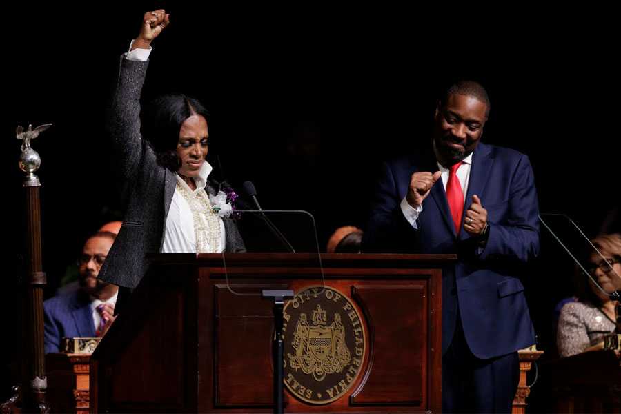 Surrounded by family, friends, former mayors and current U.S. and state legislators and officials, Parker echoed her campaign promise: to make Philadelphia the “safest, cleanest, greenest big city in the nation that will provide access to economic opportunity for all.”