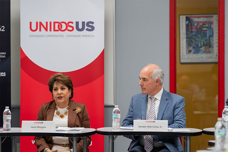Janet Murguía, presidenta y directora ejecutiva de UnidosUS, agradeció al senador Casey por unirse a lo que calificó como una conversación poderosa, así como a sus afiliados, aliados y socios que colaboran con su misión de generar riqueza dentro de la comunidad latina.