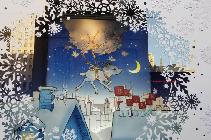 Así, empecé mi recorrido visitando la tienda Macys, en el edificio Wanamaker, localizado en la calle Market. Al llegar pude observar los grandes mostradores decorados como libros de pop up que contaban la historia de “Tiptoe y la máquina voladora/Tiptoe and the flying machine”.