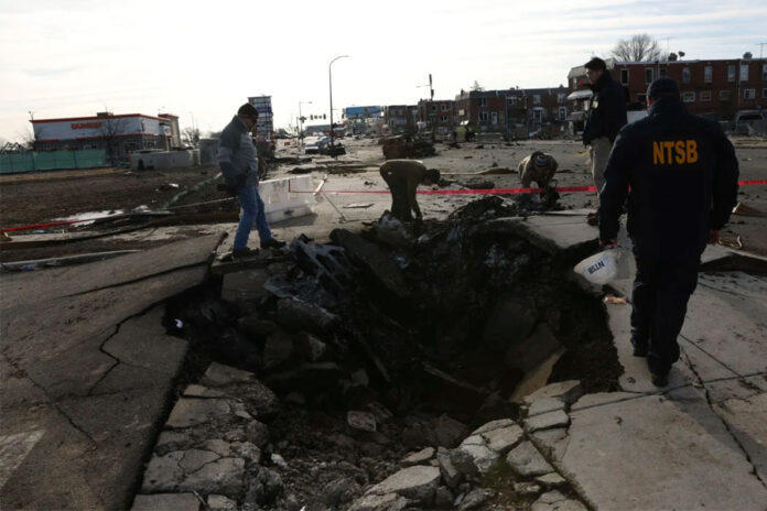 Debris from the crash exploded into a fireball, and pieces of the plane were blown into the residential and commercial Castor Gardens neighborhood, severely damaging several businesses. City officials said four homes were destroyed, six sustained major damage and 11 were otherwise damaged.