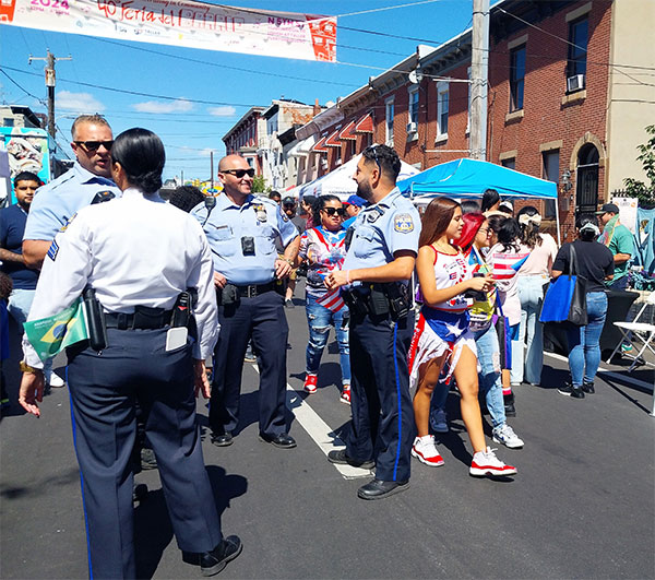 Como en años anteriores, la policía estuvo a cargo de la seguridad de los asistentes. José Figueroa, exmiembro de la Spanish American Law Enforcement Association, que cuenta con más de 50 años de existencia, fue uno de los policías encargados de vigilar que el evento transcurriera sin incidentes. Este año caminaba por la feria en compañía de su nieto, Josh. “Estoy aquí, disfrutando del ambiente festivo como voluntario de esta bonita Feria del Barrio”, comentó.