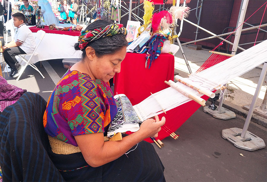 Yolanda Alcora, cofundadora y vicepresidenta de la organización Raíces Culturales Latinoamericanas, presentó nuevamente a las tejedoras de textiles en telar de cintura de la cooperativa Tejiendo para el Futuro, y a la marimba maya AWAL.