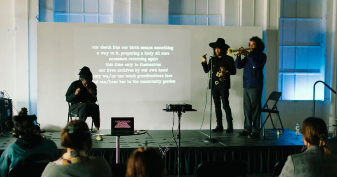 El evento también centró el arte; Moor Mother, socia de Phillips y artista interdisciplinaria, interpretó un poema de 20 minutos.