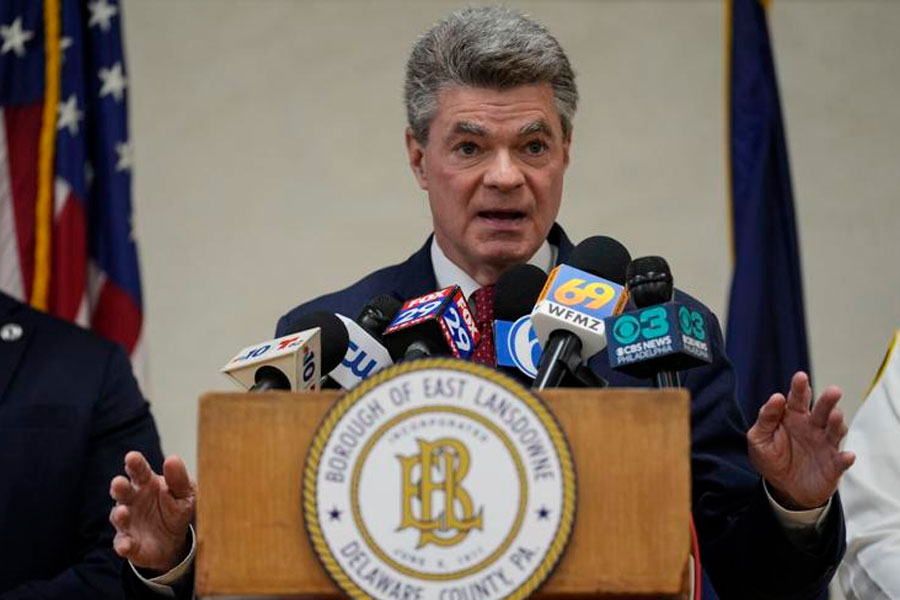 Delaware County District Attorney Jack Stollsteimer speaks during a news conference in East Lansdowne, Pa., Wednesday, Feb. 28, 2024. Officials near Philadelphia are closing their investigation into a shootout and house fire that killed six members of an extended family. (Photo: AP/Matt Rourke)