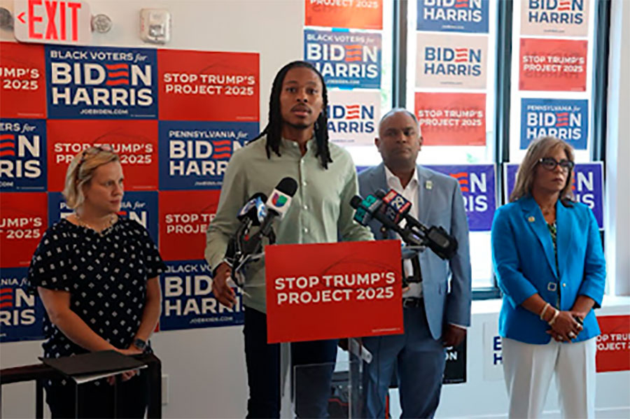 El 16 de julio los representantes estatales Malcolm Kenyatta y Danilo Burgos, la senadora estatal Maria Collett, así como otros líderes del área de Filadelfia, participaron en una conferencia de prensa en el segundo día de la Convención Nacional Republicana. Durante el evento, resaltaron la decisión que enfrentan los habitantes de Filadelfia y Pensilvania en esta elección que daría forma al futuro de Estados Unidos en las próximas décadas.