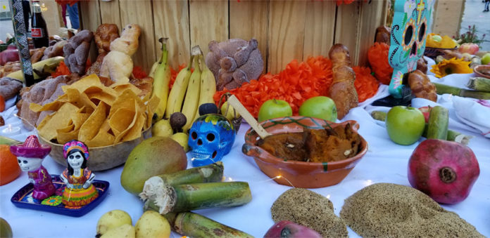 Durante la ceremonia protocolar, Pinto dijo que el altar titulado “Los Nuestros” busca honrar a nuestras familias y amigos. “Los que quieran ofrendar flores, comida, pan, lo que gusten, pueden ponerlo en la ofrenda. El viento, el incienso, el copal que vino desde México para ustedes va a hacer que ellos se sientan amados”, agregó.