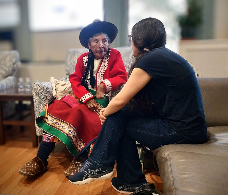 Hilaria Supa Huamán with the interpreter Armando Ezquerra Hasbún. (Photo: Leticia Roa Nixon)