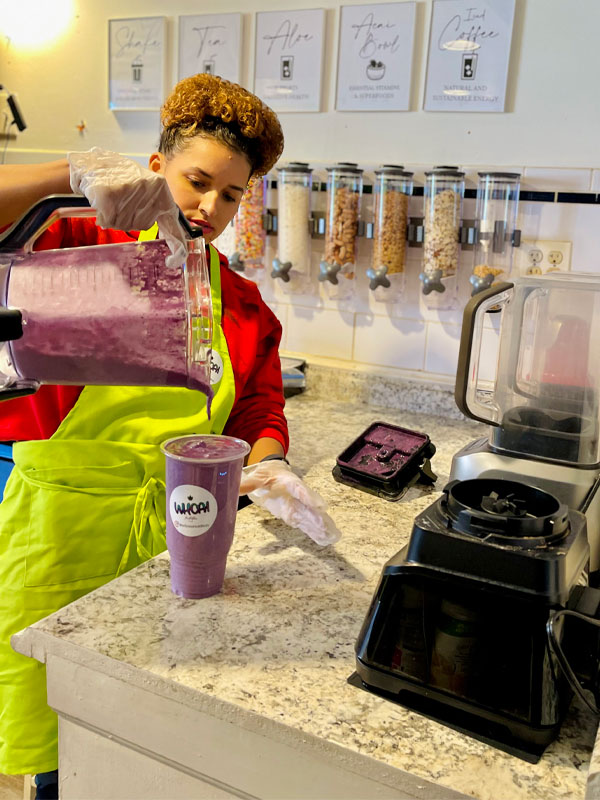 Al principio la comunidad estaba un poco escéptica, pero tras probar los batidos y decían “whoa está delicioso ¿ y esto es nutrición?; no lo puedo creer, está muy rico”. De ahí el nombre del negocio, Whoa Nutrition, por la expresión que el cliente hace cuando prueban sus alimentos. Ahora, su negocio ha podido apoyar escuelas, a patrocinar equipos de deportes escolares, niños de 12 a 15 años.