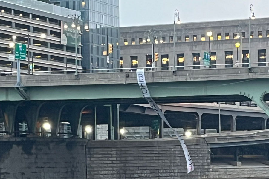 Philadelphia, PA – On the day Vice President Kamala Harris arrived in Philadelphia for an announcement regarding her vice-presidential running mate, pro-immigrant activists took a stand by unveiling a banner over the Walnut Street Bridge in Center City. The banner read, “Biden, Harris Shut Down Moshannon, Elizabeth, Clinton, Pike,” calling on the administration to address and halt immigrant detention practices.