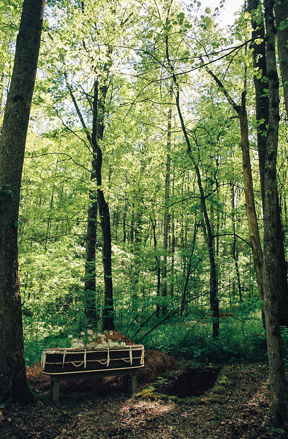 Phifer enumeró los elementos comunes de un entierro ecológico: “Sin embalsamamiento químico, sin ataúd de acero, sin bóveda de concreto. Todo lo que va al suelo debe ser compostable o biodegradable”. Acompañando esta tendencia, ha surgido una pequeña industria que produce ataúdes tejidos artesanalmente, sudarios de lino y otros artículos funerarios ecológicos.