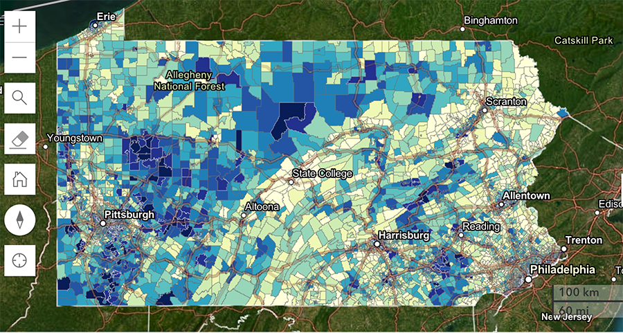 La herramienta de detección y mapeo de justicia ambiental de Pensilvania (PennEnviroScreen ) disponible en línea en gis.dep.pa.gov/PennEnviroScreen/.