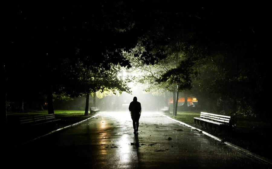 Un hombre camina por un parque durante una tormenta de lluvia producido por el paso del huracán Ida que azotó el área en el distrito de Queens de Nueva York. (Foto: EFE/Justin Lane)
